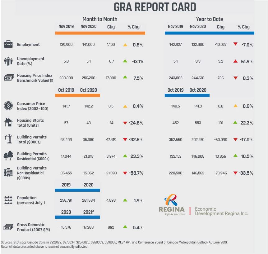 The Economic Report Card is a joint initiative between Economic Development Regina Inc., Praxis Consulting, and SJ Research Services. It provides a concise report of key economic indicators for the Greater Regina Area, updated monthly.